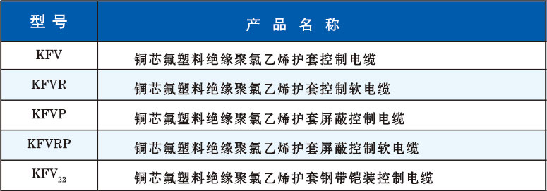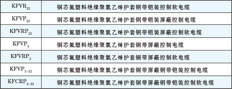 注:氟塑料絕緣和護套聚氯乙烯護套控製電纜在芯數多,截麵大的情況下代替氟塑料絕緣和護套耐高溫