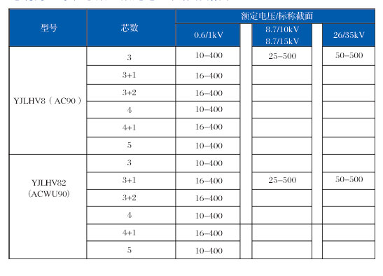 使用於600V~35KV電壓等級;使用於90℃下幹燥或潮濕場所;可室內、室外安裝,可垂直安裝,也可托架或沿牆敷設,也可地下直埋安裝;彎曲半徑小為7倍外徑,也可360°彎曲;使用於民用、商業、工業、大型場館、娛樂場所、礦井、地鐵以及各類級別危險地區等場所。
