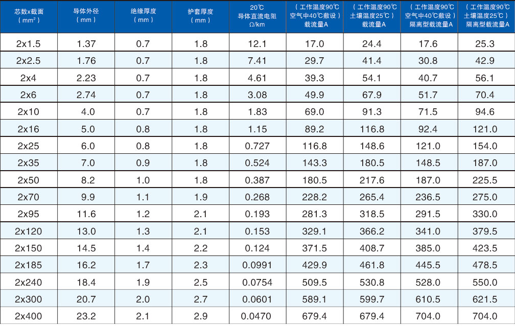 型號:FA-BTGYRZ(FA-BTLHYZ) 規格:2x1.5-2x400mm2 額定電壓:0.6/1KV